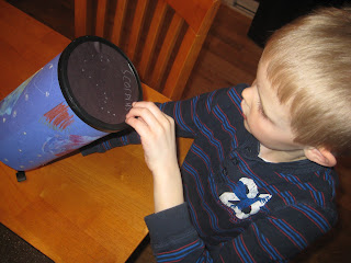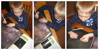 going to make a projector to shine the constellations on the wall. The last time we learned about stars was ages ago, but his enthusiasm for all things