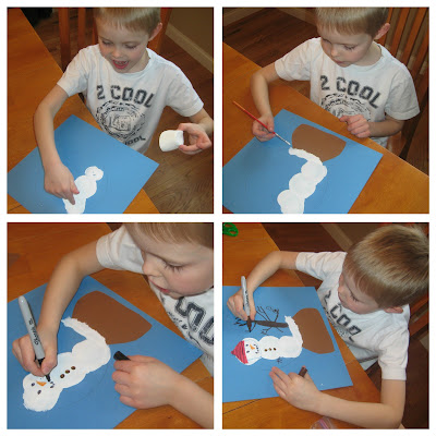 it lightly. Now I handed my son the jumbo marshmallow and some white paint I’d