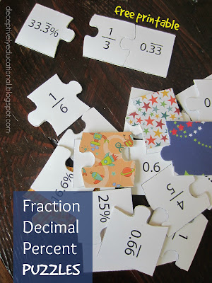 Fraction, Decimal, and Percent Puzzles (free printable)