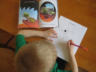 Although the crossword squares were larger than what you’d find in the local newspaper, they still challenged my son’s fine motor skills. Not only that, but now he knows how to spell the word ‘lava.’