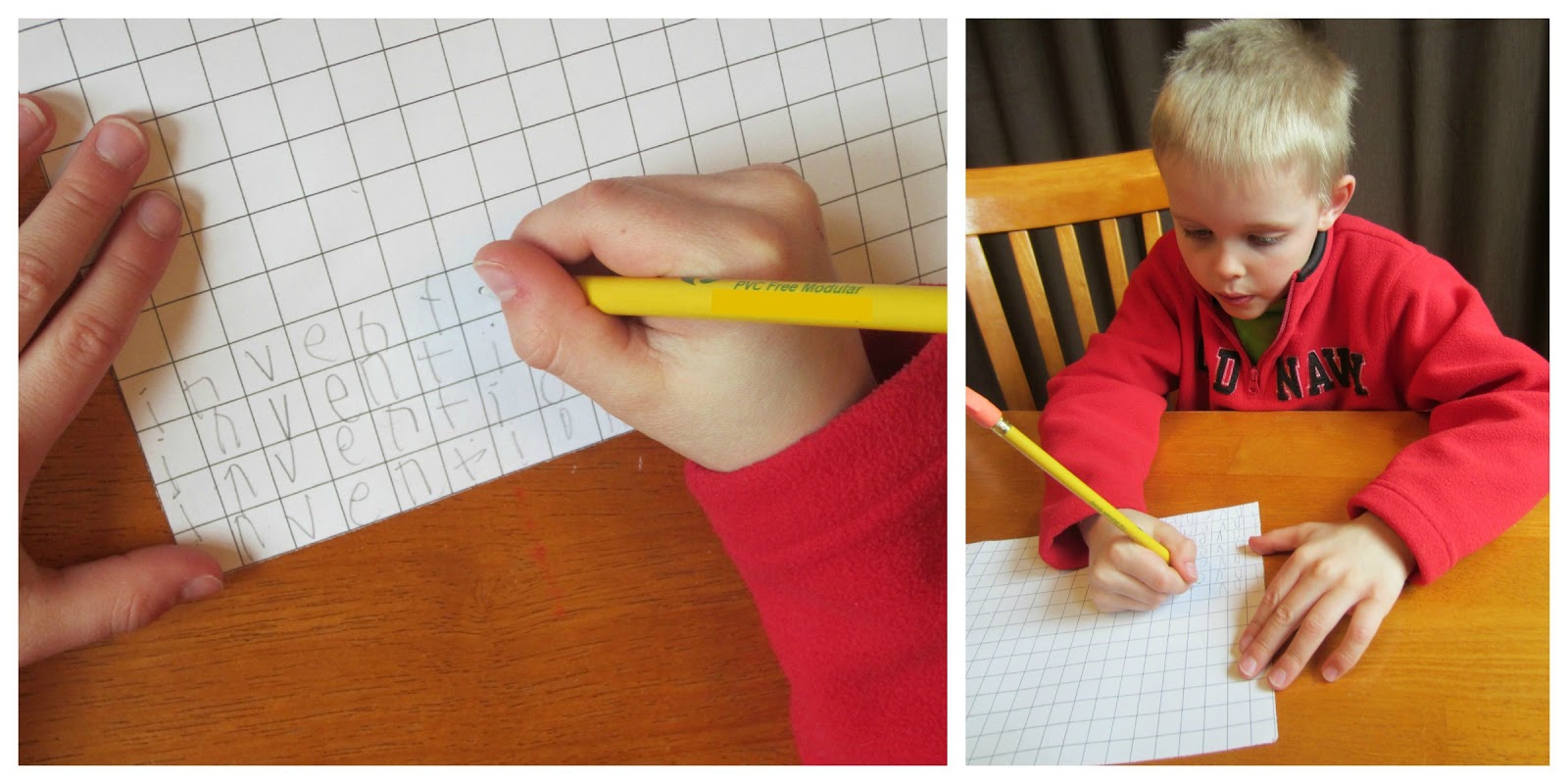 This activity was great fun for both my boys. I read the word from the spelling list. My oldest son