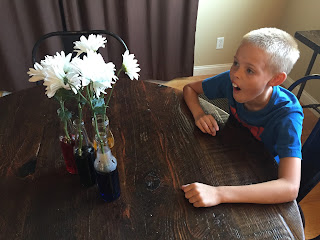The boys learned about how plants absorb water by dying flowers. Here's how we did it.